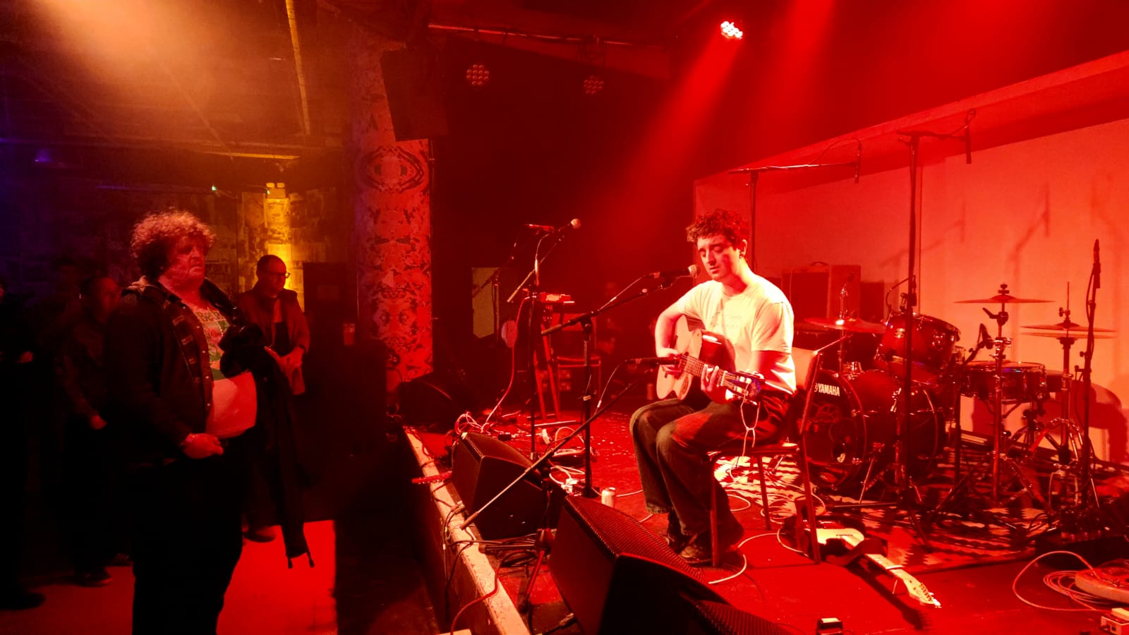 Jeff has taken his place right at the front as opening act Hamburger‘s singer Ferghall takes to the stage: “I didn’t think anyone would be here!” he says, looking out on the filling room of music devotees out to catch them early doors.