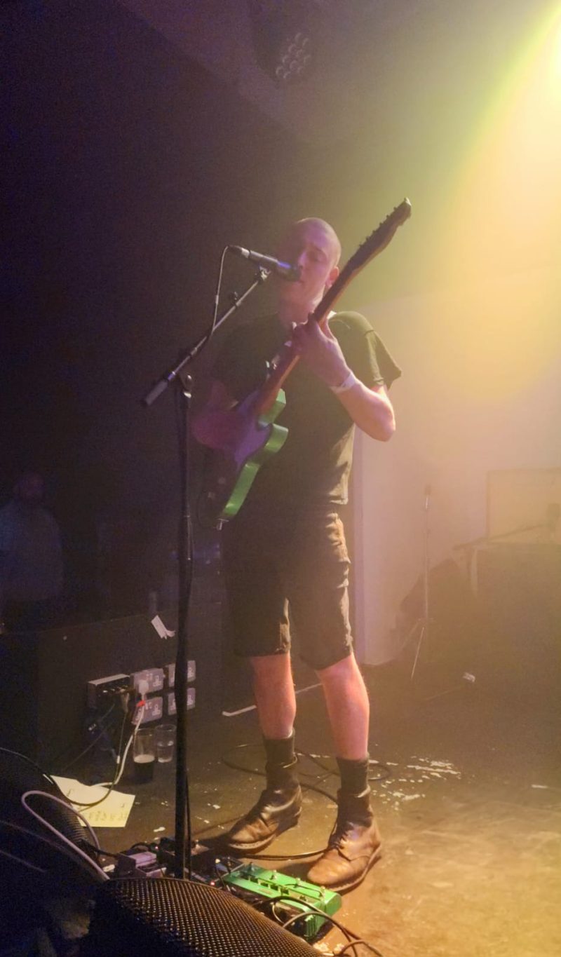 Ferghall greets us with an acoustic guitar, stripped back and vulnerable, his voice the gentlest I’ve ever heard: like a falsetto Elliott Smith. The band join Ferghall on stage after his “two crappy acoustic songs” as he put it – though I, for one, disagreed.