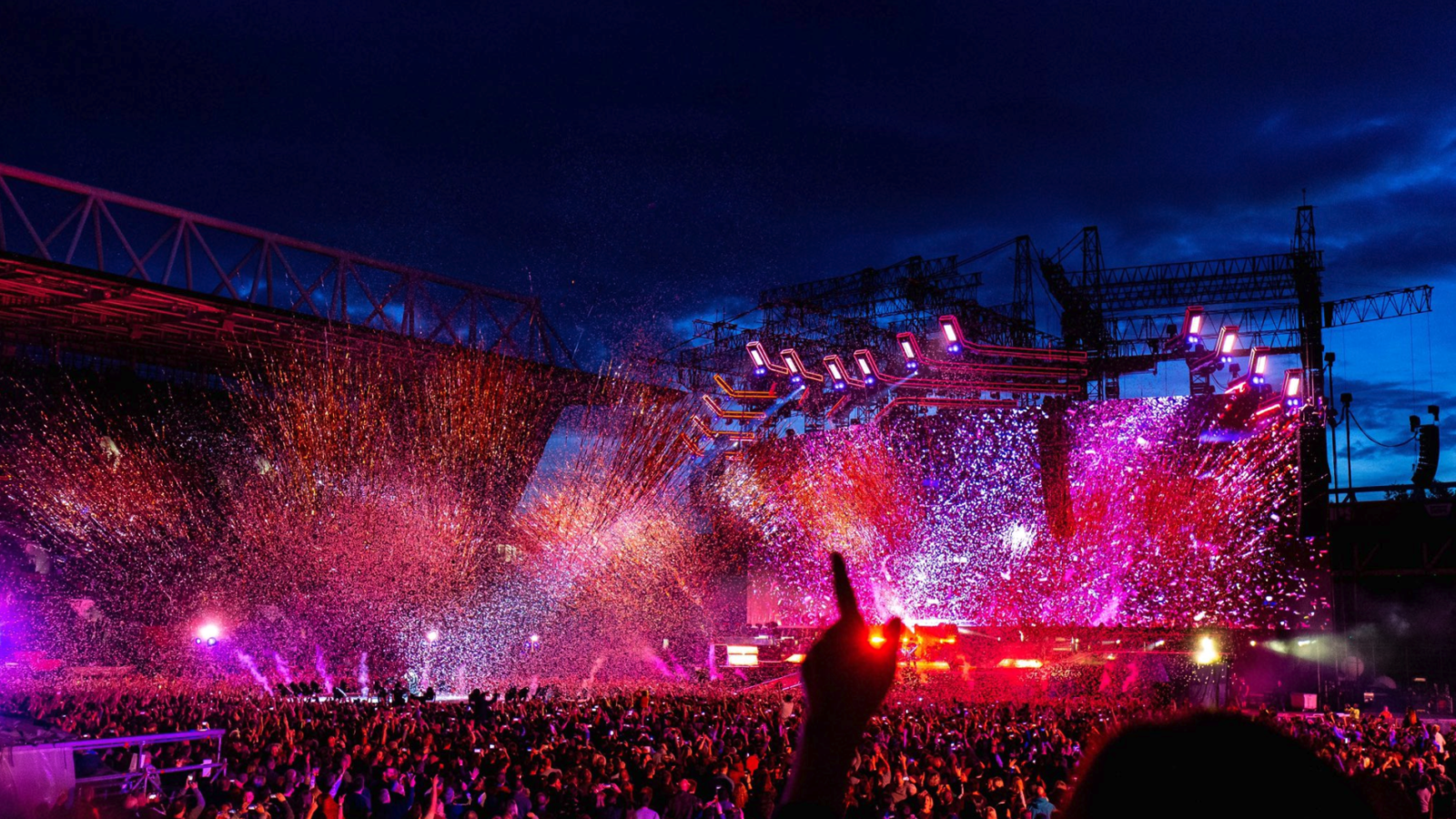 Phones lit up in solidarity with a beautiful, keys-driven rendition of Undisclosed Desires, matching Bellamy’s glittering star-studded jacket; while oversize sparkling confetti cannons and enormous streamers fired across the stadium in a euphoric blowout for Madness.