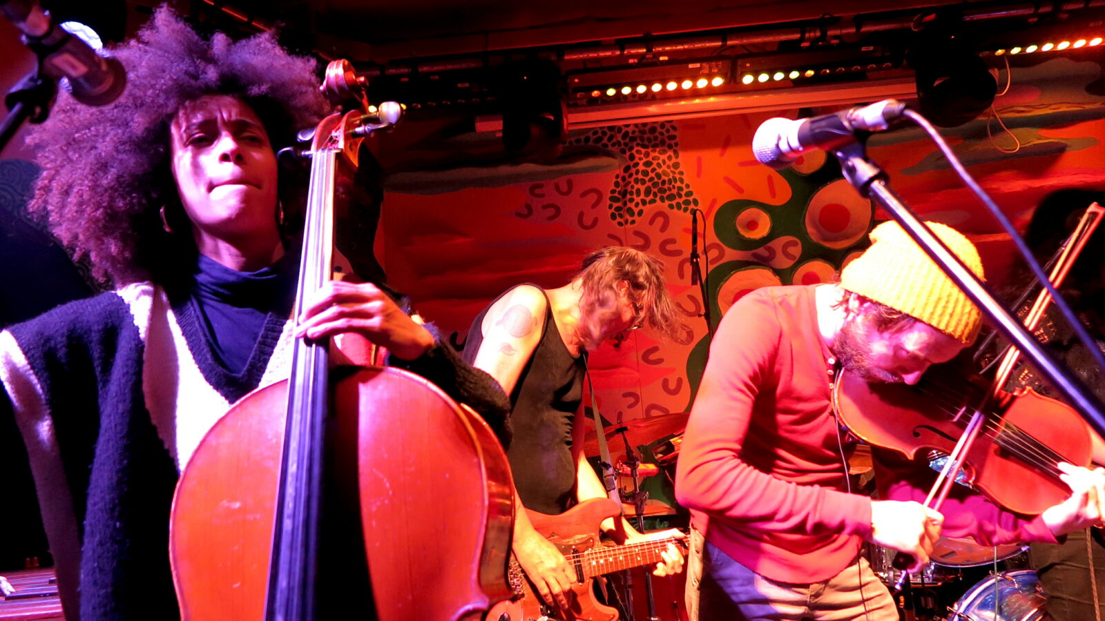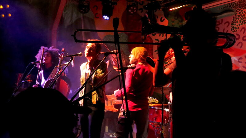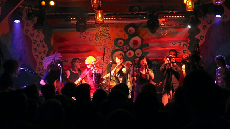 What’s astonishing about the OTPMD is the apparently effortless collaboration of ideas and talents across such a wide range that, at any point, felt in perfect balance and somehow absolutely right. There were moments heading into Philip Glass minimalism that then veered towards Funkadelic groovers. Another song toyed with grindcore before the sonic curtains parted and heartfelt Balkan a cappella harmonies swept across us. Like seasoned plate spinners they knew how to let things teeter for a moment of delicate pizzicato fragility before unleashing an exhilarating drop into dance floor turbulence.