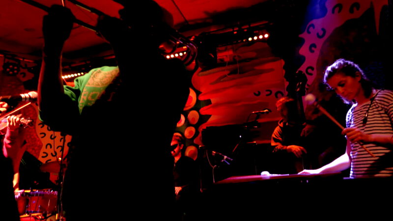 And there they were – a 12-strong musical circus from Switzerland shoehorned onto the Jam Jar’s compact stage. Flanked by two marimbas, somehow they squeezed in a string trio of two violins and a cello, a brace of guitars, trumpet and trombone horn section and two percussionists as well as the discreetly invisible bandleader Vincent Bertholet’s bass tucked away out of sight at the back. They don’t do leaders in the Orchestre Tout Puissant Marcel Duchamp anyway, and it was very much a collective maelstrom unleashed once they all kicked in.