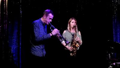 Being usually associated with alto sax meant that Sophie’s choice of tenor gave an interesting new voice to her playing, the mellower tone also reflected in Pete’s consistent use of flugelhorn and frequent deployment of the flowerpot-like bucket mute. The two horns came together perfectly on Ulrike’s Dance, a soft-sounding folksy ballad by Norwegian musician Trygve Seim that established a richly toned melodic unison of sax, horn and bass over a tidal wash of cymbals before Chris’ lyrical solo made the most of the tune. Similar unison passages punctuated a measured version of Wayne Shorter’s Tom Thumb, though this was distinguished by a thoughtful sax solo that carefully unpicked the number with just the occasional flourishes of boppery to suggest the restraint involved.