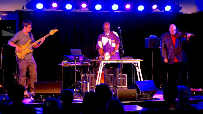 Well this was a bit of a puzzler. Right until the last minute I had assumed it would be a solo performance from the master vibraphone player, as no other names were mentioned in the publicity. Given Orphy Robinson’s dexterity and musical imagination that could certainly have been a great gig, but as it happened he appeared with bass guitarist Tiago Coimbra and violinist Benet McLean, the latter plugged into an impressively complex FX pedal board. So, a trio gig then …