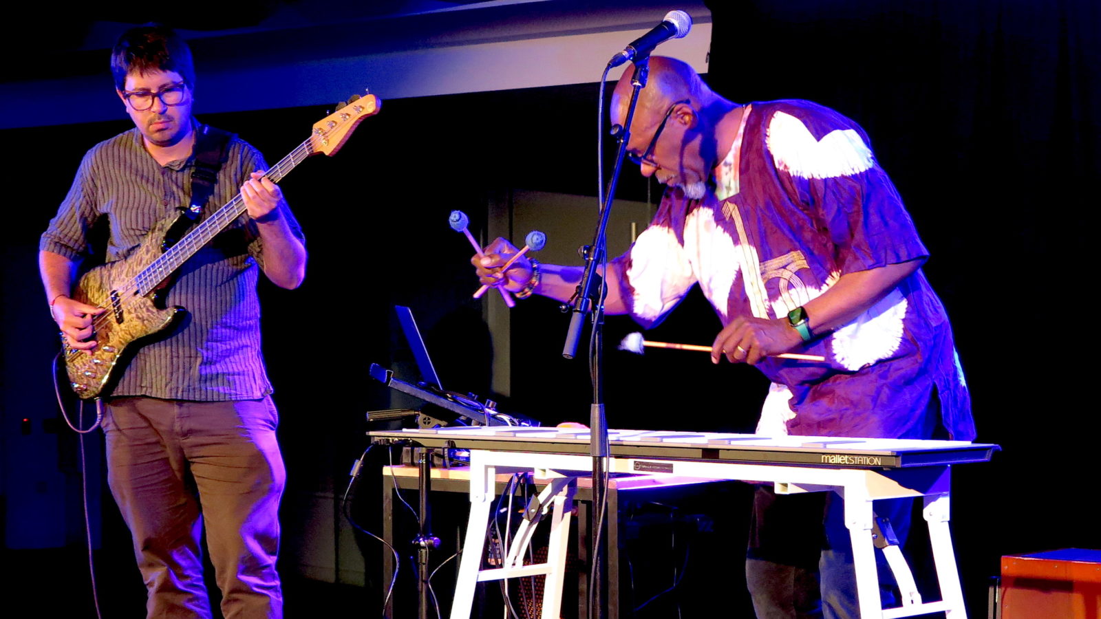Tiago Coimbra (bass), Orphy Robinson (vibes) and Benet McLean (violin). (photo: Tony Benjamin)