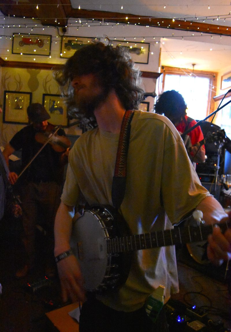 Along with the fiddle, guitars, bass, drums and various synths there’s also banjo, melodica, much shaky percussion and an emphatically played rainstick. They sing, chant and intone in unison, bringing a ritualistic air to the post-folk proceedings. 10/10, ones to watch, for sure.