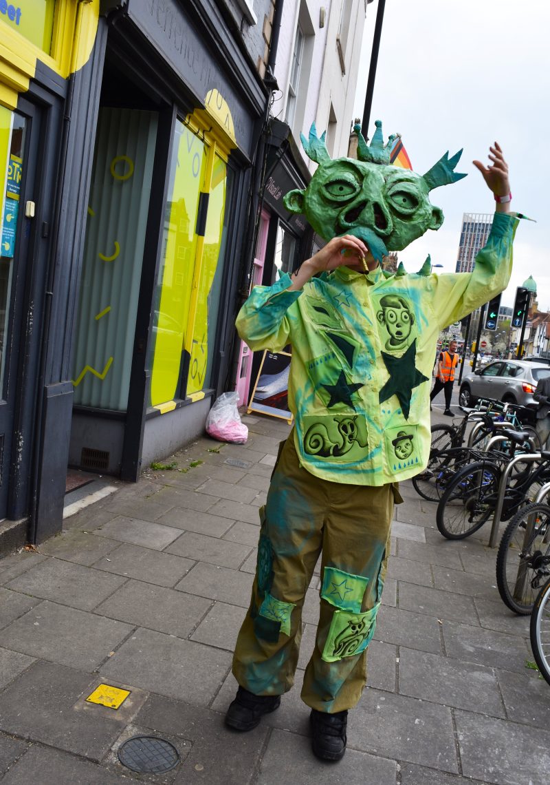 And it’s an urban festival like no other: its unsettling lore depicted in volume one of an event-accompanying illustrated zine with fantastical backstory, characters and the creepy poem of the Old Bog Wight; ‘thee mappe’ of venues (Trinity, Wiper & True, To the Moon, Ill Repute, Old Market Assembly, Elmer’s Arms, East Bristol Bookshop, Exchange and Stag & Hounds) reminiscent of Lord of the Rings worldmap; and King Marvyn, the egg-headed monarch that lost his mind to the “madculine” ideal taken to its logical conclusion – if I’m understanding my lore correctly – of cannibalism, seen shambling up and down Old Market in all his sickly green and blue resplendence.