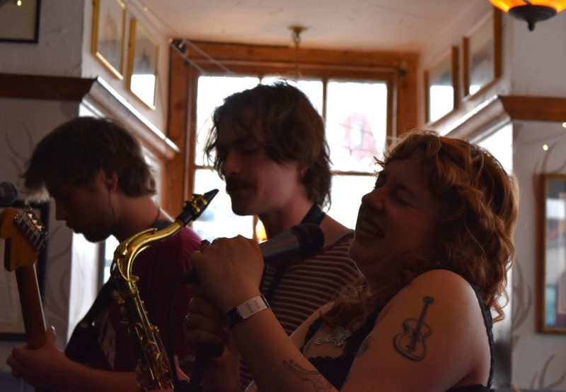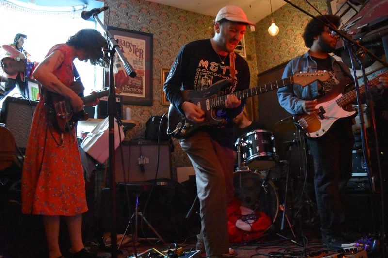 Bath’s Paper Crowns are part of a killer programme presented by Cellar Door at Stag & Hounds. They explode with a skronk, filling the tiny windowside stage with discordant guitars, jazzy vocals, cowbell and saxophone.