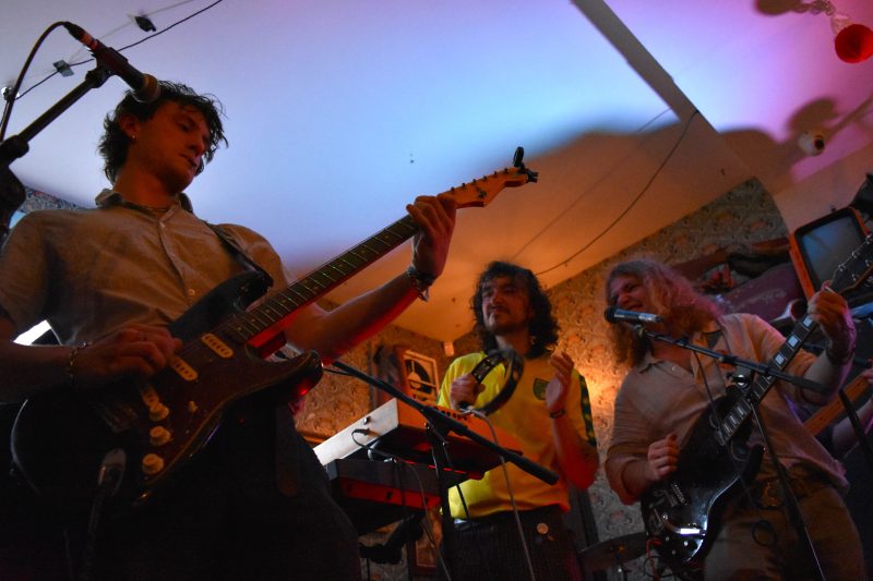 Ill Repute’s retro-kitsch living room aesthetic, complete with flock walls, Elvis figurines and wall-mounted moped, is the perfect backdrop for Lawi Anywar’s post-funk shoegaze psych-out, the floor a sea of pedals, drummer extraordinaire Oli Cocup out his seat with excitement at the eye-watering guitar solo climax.