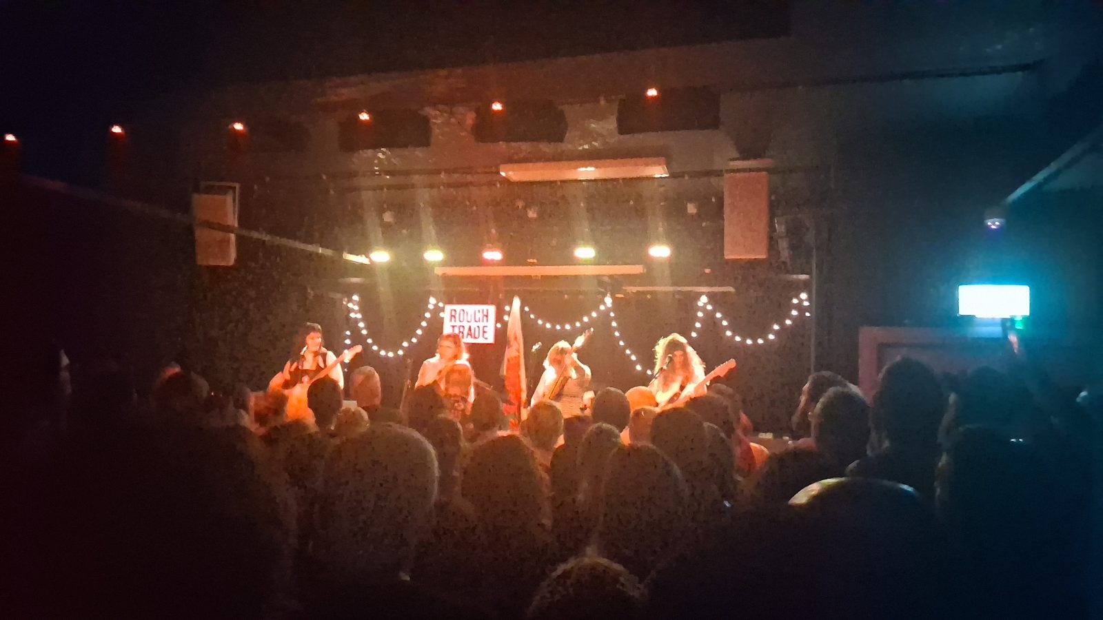 Panic Shack grace Rough Trade’s stage at 1pm, although it doesn’t feel like it. Through the murky lighting and the fishnets, they run through a list of greetings: “How are we doing tonight?… This morning?… Today?” before landing on the improbable “afternoon”.