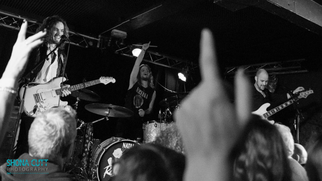 Leicester’s SKAM are one of an ever-growing number of hard-working, hard-rockin’ British bands who slog around the live circuit hoping for a much-needed break. Here in Bristol, they’ve built up a modestly proportioned if fiercely loyal audience who are out in force to cheer them on during their brief 30 minute support slot. They’ve also got an impressive USP with their ambitious third studio album, The Amazing Memoirs of Geoffrey Goddard – a concept piece about a time-travelling spitfire pilot. “No, really,” frontman Steve Hill assures us. “I’m not lying”.