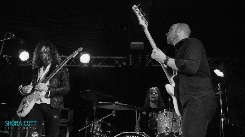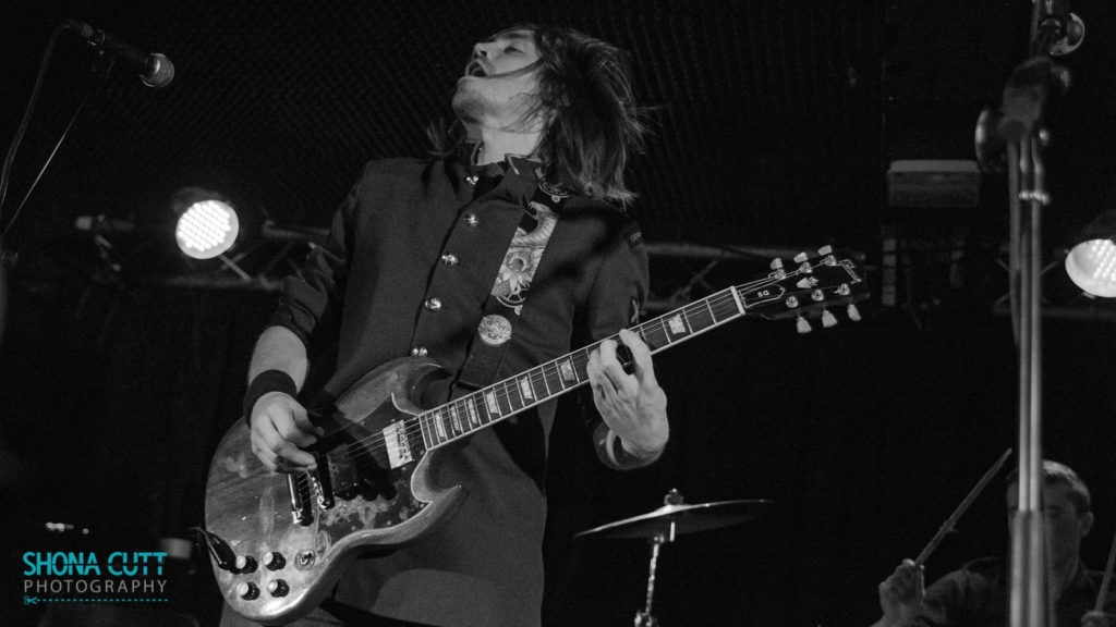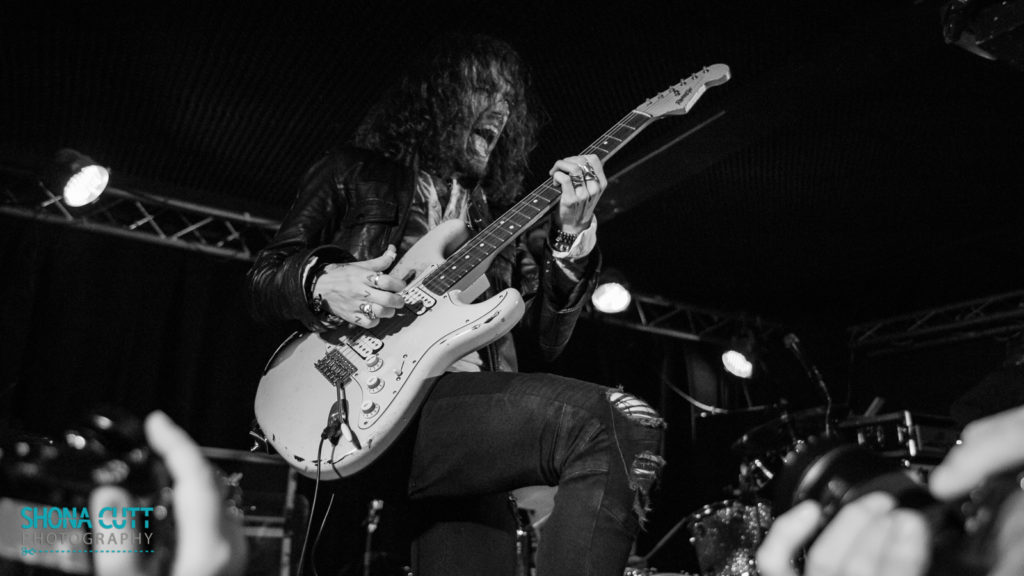 Not to be outdone, bassist Aaron Spiers joins in with gusto, clambering all over the drum kit and bearing Oli aloft on his shoulders as they rampage through the crowd, as though possessed by the spirit of Airbourne. Rising to the challenge, drummer Adam Breeze takes every opportunity to emerge from behind his kit and bound around the stage in the restless, spotlight-hogging style of Halestorm’s Arjay Hale or Boris’s Atsuo. Impressively enough, all this tomfoolery is achieved without missing a note of their driving blues rock.