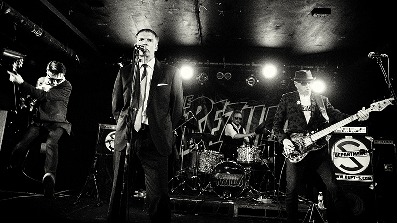 It’s fair to say that Department S have a fairly chequered history but that need not detain us here as what matters is the fact they delivered a formidable and powerful set with the majority of the numbers new and easily the match of the older songs. The current line up Eddie Roxy, vocals; Phil Thompson, guitar; Pete Jones, bass and Alan Galaxy on drums are a taut suited & booted outfit and they delivered a muscular ten or so songs with both energy and conviction. Roxy, a relatively static presence on stage, had a consummate new wave insouciance about his vocals whilst Thompson and Jones were never still: Townsend jumps; that duck walking glide (as perfected by Wilko Johnson) and constant motion. Galaxy was a solid and powerful presence, his compelling beats the foundation for Jones’ muscular bass and Thompson’s lean riffs and needle sharp leads.