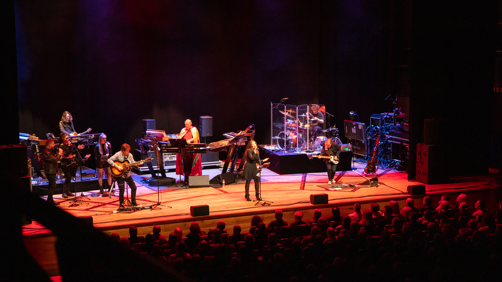 Drummer Adam Falkner is so powerful he’s surrounded by a prophylactic acoustic shield. Also proving hugely impressive are the BVs – a close harmony trio of backing singers, who provide a scintillating intro to The Meeting. Rick himself is as dextrous as ever, occupying centre stage resplendent in his trademark capes (he gets a Madonna-esque costume change at half time) and surrounded by a huge bank of keyboards, augmented by his son Adam on additional keyboards and occasional guitar.