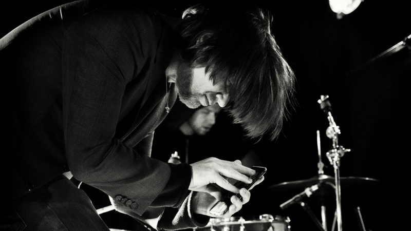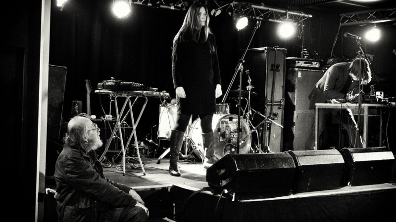 Thereafter the trio built their soundscape, Johnson driving a motorik beat decorated with powerful fills and crescendos whilst Jones prowled in front of him wringing a bombardment of noise from his ‘phone. Gardiner chose her moments to sing live, chose her moments to trigger looped vocals, all the while lost in her own dance with Jones throwing shapes as he conjured feedback and white noise in reaction to the vocals and drums.