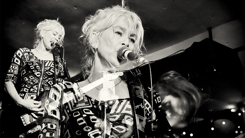 Joined by John Langley, drums; Mike Youe, bass and Neil Smith, guitar; Rita Lynch played getting on for twenty tunes to a rapturously rowdy response. Prior to the show she’d admit to feeling nervous – longer set than usual, four piece line-up, and playing older songs for the first time in years – but it was obvious from opening number All Dressed Up that she had nothing to fear. A sprawling, heavy dynamic piece that set the tone for the rest of the set. Langley was fierce all night, battering the kit, locked in with Youe and filling the beat with rolls and an attack that was exhausting just to watch. Youe is a forceful bass man, and needed to assert himself given the quality of the guitar playing on stage. He handled his corner with aplomb, melodic and yet aggressive too. He was a physical presence on stage, and offstage too as he forced his way in to the crowd on a couple of occasions. The rhythm system totally locked down the groove for Lynch: a rock solid foundation, physical and precise, such was their effort that an emergency call for cider was made mid-set to rehydrate. Neil Smith was on fire throughout the set, peeling off incendiary solos at will – finely judged and never distracting from the song or showboating; innovative and a million miles away from the generic shred by numbers solos requiring twelve fingers. All three musicians were clearly enjoying themselves, grinning like it was going out of fashion and performing with total enthusiasm for the material.