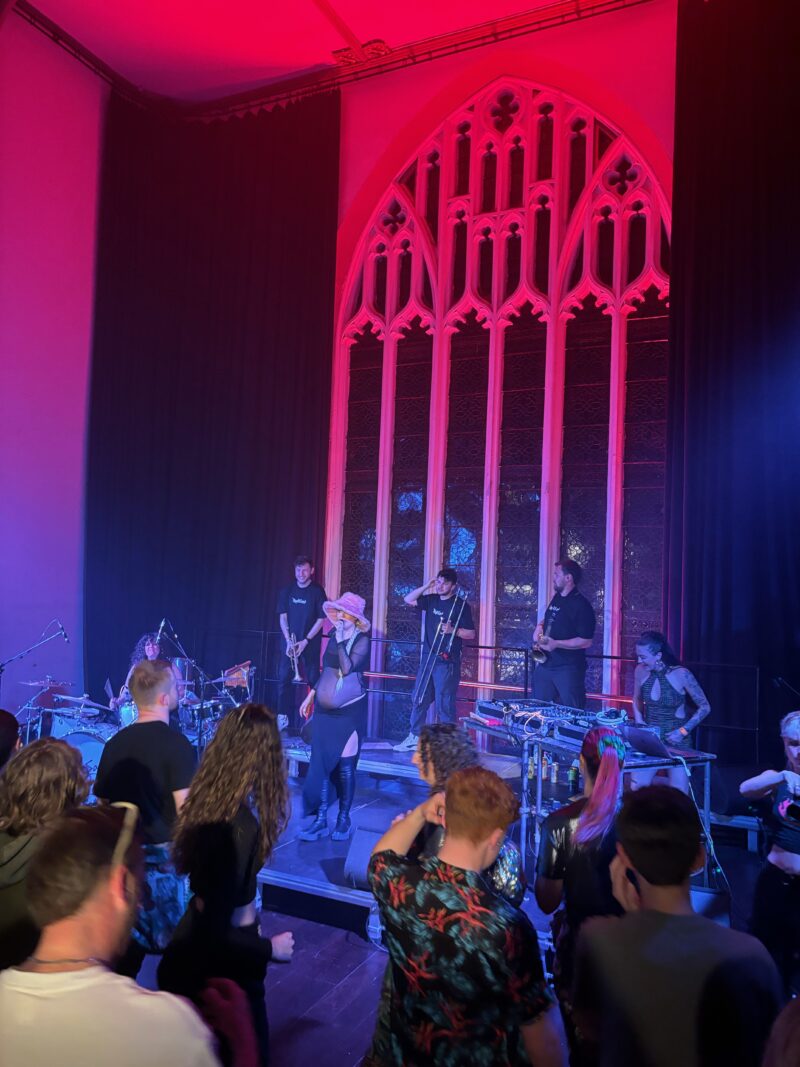 The night kicks off with rousing support from emerging DJ APH and established name on the scene Riya, as thin shards of light breach the blinds over the stained-glass windows. Arriving shy of 9pm and feeling your bones rock at 160bpm is slightly strange, but it’s as good a spot as any for this bass-heavy homecoming. The demographic is fascinating, too, with older ravers having it in abundance..