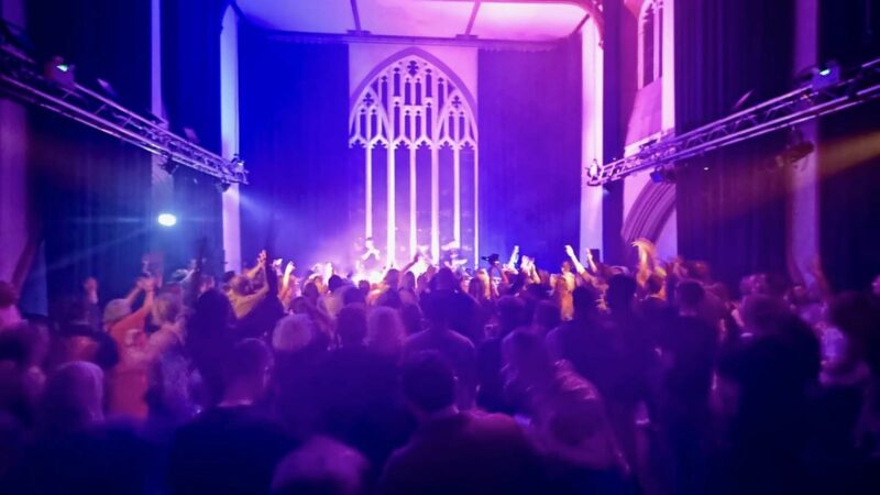 Here we are then. Trinity Centre. Two-stepping within its spires and beyond its grand facade. The church walls reverberate and the lo-fi lighting bounces nicely off the cornices onto the slowly accumulating crowd.