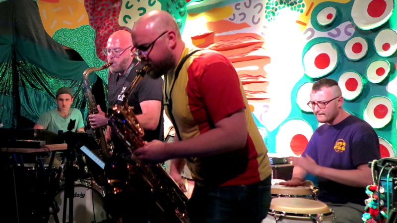 The record is infused with EDM-influenced bass electronica from producer Riaan Vosloo but in his absence guitarist Messore brought a rockier vocabulary to things. It was a bit like Motorhead being invaded by free jazz reedman Albert Ayler and the grinding rhythms and rock-hewn chord sequences suited Brown’s frenetic drumming while inflaming saxophonist Hayes into coruscating sheets of sound. It was a sledgehammer announcement of intent that definitely suited Big Jeff’s dancing style.
