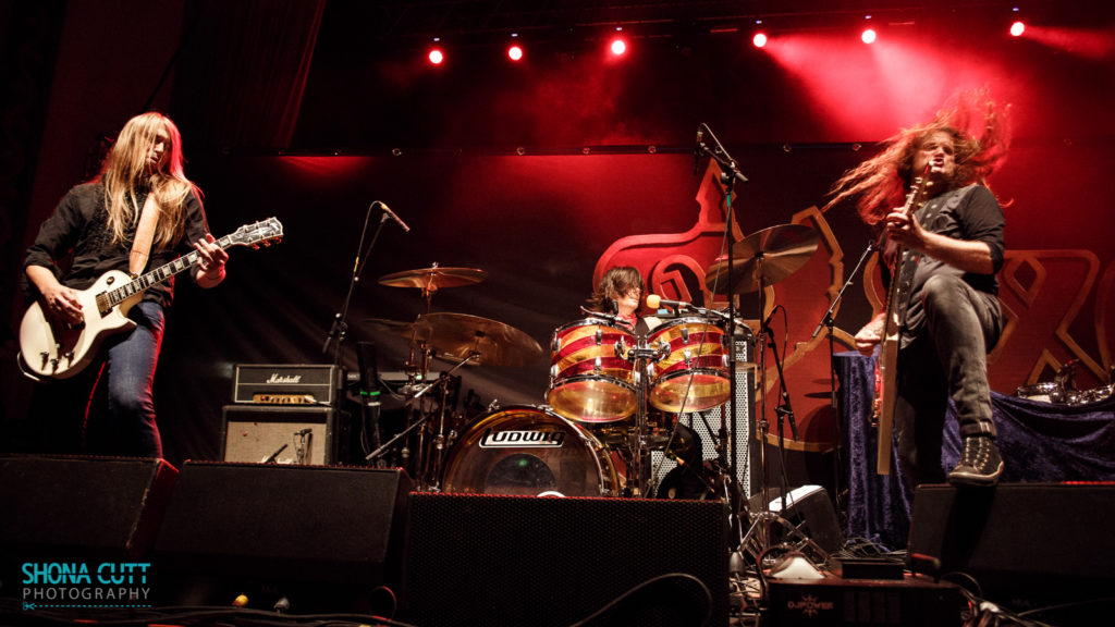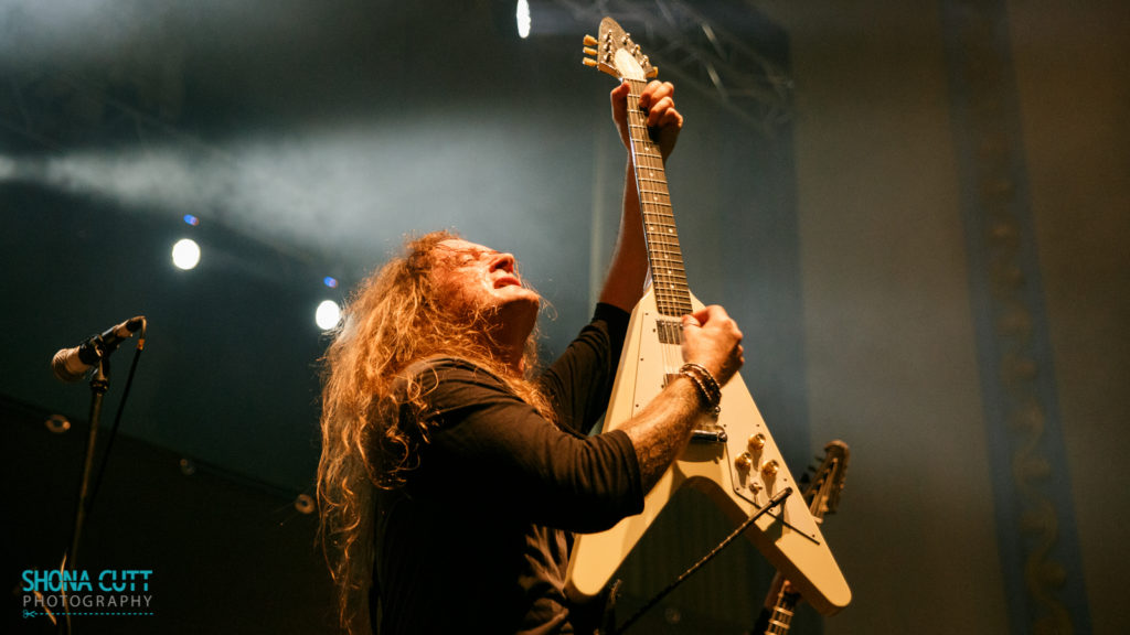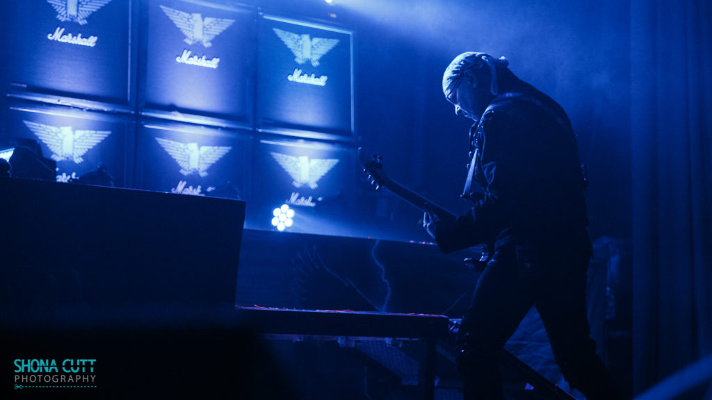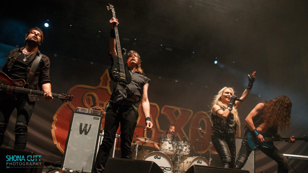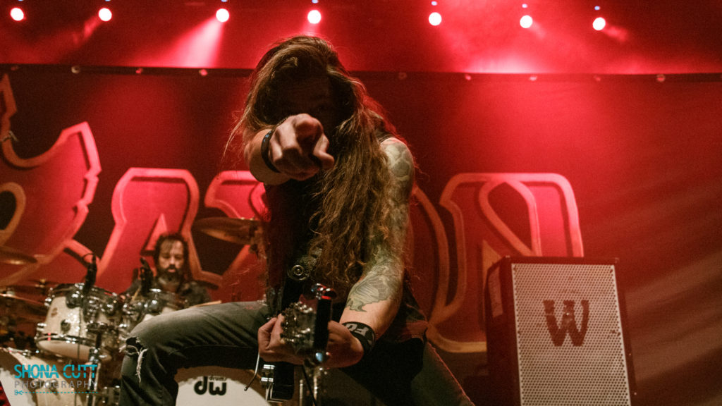 This was never going to be an ideal showcase for Wayward Sons, who find themselves spread out along the front of the Forum’s impressively large stage between Doro’s gear and in front of Saxon’s giant shrouded set. But they make the most of their measly 30 minute slot, winning warm applause as they climax with their best song, Until the End.