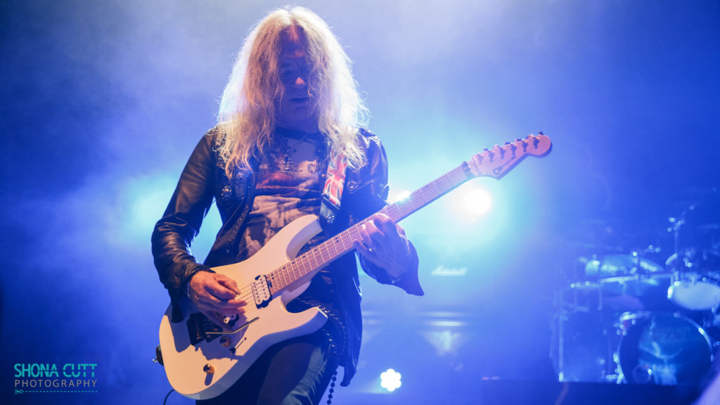 They’ve never enjoyed the record sales of contemporaries Def Leppard or the (grudging, belated) critical kudos of Iron Maiden, but Saxon have sheer bloody-minded, never-say-die dogged persistence on their side, which paid off with a recent return to the top 30. The title track of that album, Thunderbolt, kicks off this epic show. There’s no stinting on the big production on which Saxon’s reputation rests as the curtain falls to reveal a gargantuan stack of customised Marshall cabinets flanking Nigel Glockler’s huge drum kit, the stage illuminated by a state-of-the-art light show. By now, nobody remains seated.