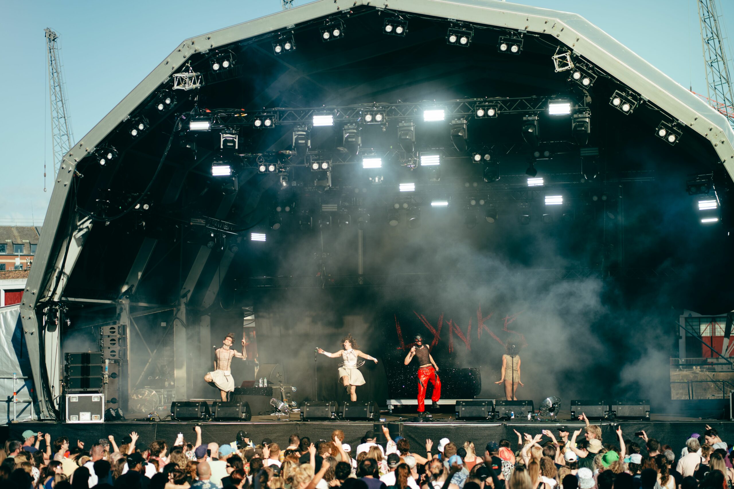 Warming up for Self Esteem, it’s impossible for Lynks to ignore that it’s also the final night of Glastonbury.