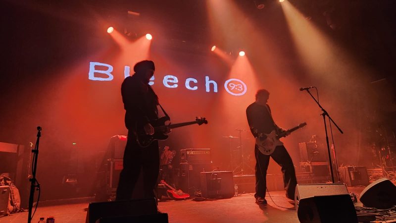 In support are Dublin four-piece Bleech 9:3 who take to the stage and launch straight into heavy grunge with bassist Josh Finerty cutting a tall dark figure, shame scarf on, hood up, bass up loud.