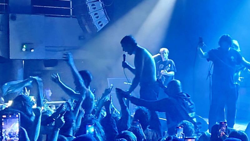 It takes all of one minute 23 seconds before a crowdsurfer dressed only in boxers with ‘SHAME’ scrawled across the ass comes flying over my shoulder and into the saving arms of security, taking the strain off the front row as they relinquished his 6ft sweaty, squirming frame.