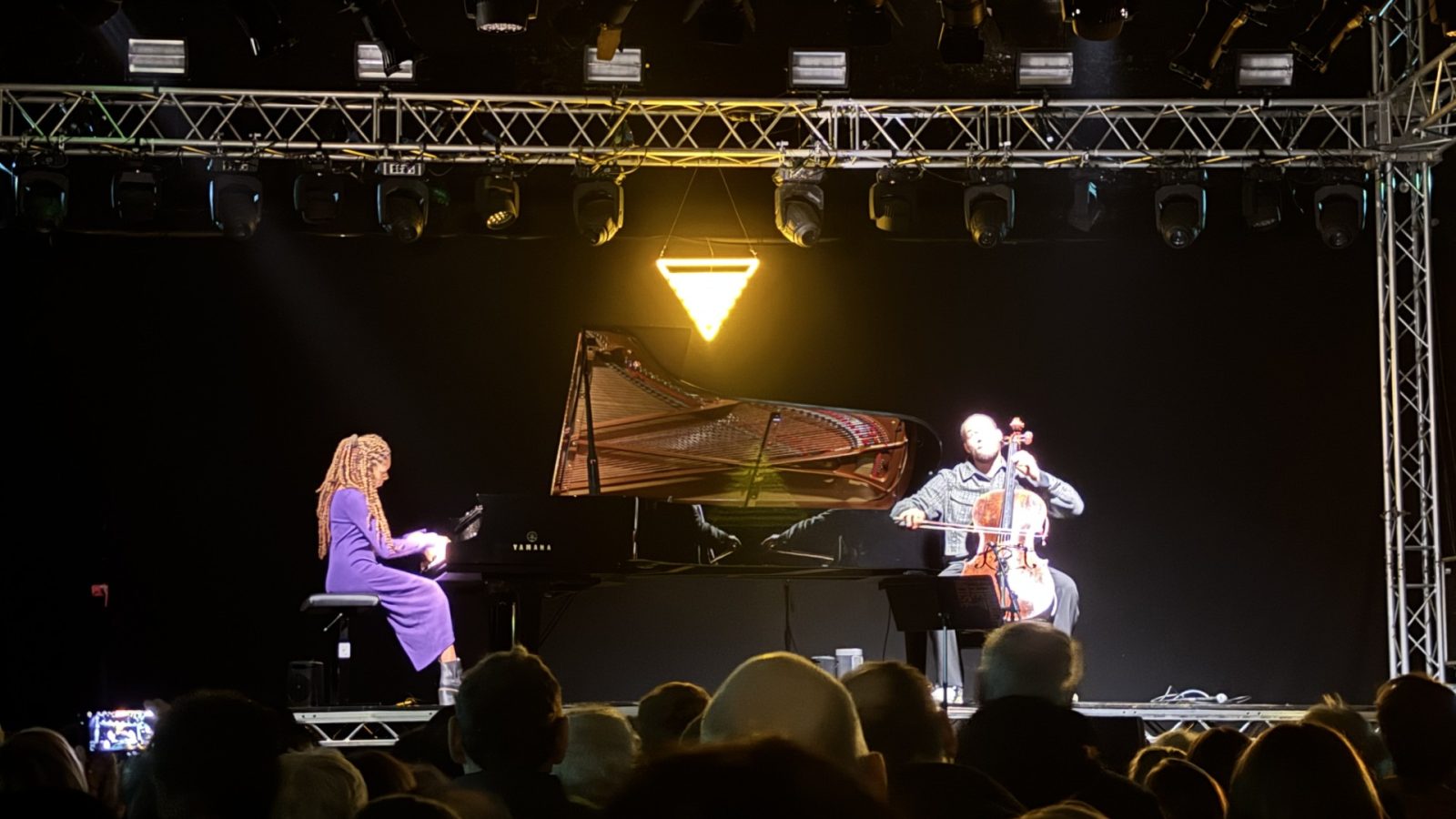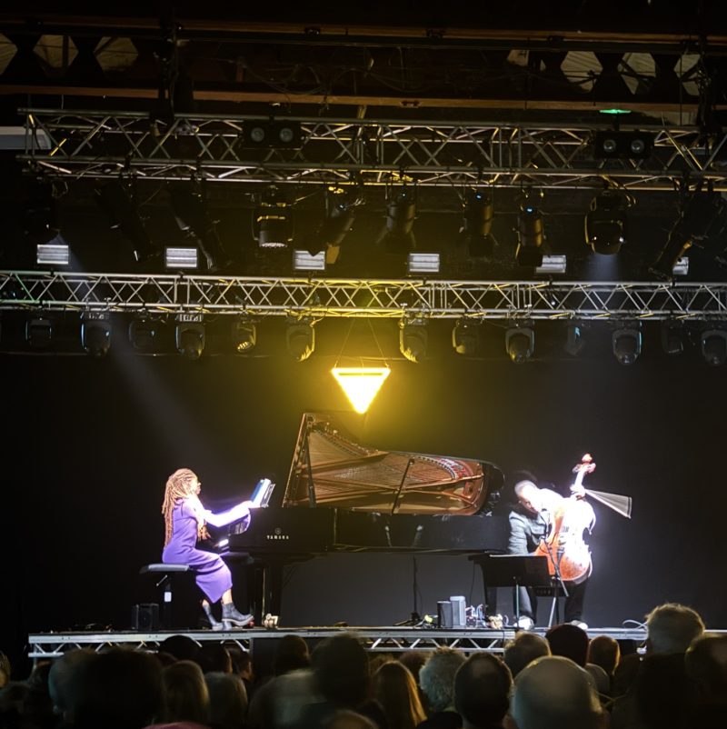 So here we are at Marble Factory, descending into silence as they open with an opus — the first movement of Mendelssohn’s Sonata for Cello and Piano. Its captivating ebbs and flows set the tone for what’s to come, with Sheku facing the first of several broken hairs on his bow.