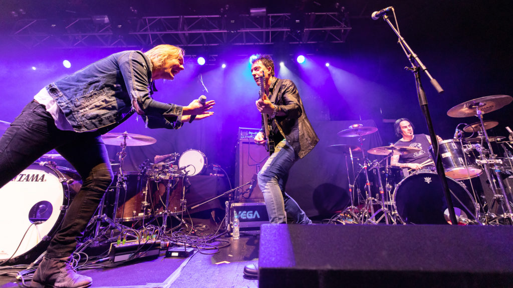 But it’s certainly paid off, as they pull a much bigger audience this time. Back in August, the balcony was closed; tonight the venue is comfortably full. Word has clearly got out that the formerly chart-topping US rockers have successfully turned their career around after being reduced to playing to a few hundred punters at the Bierkeller just four years ago.