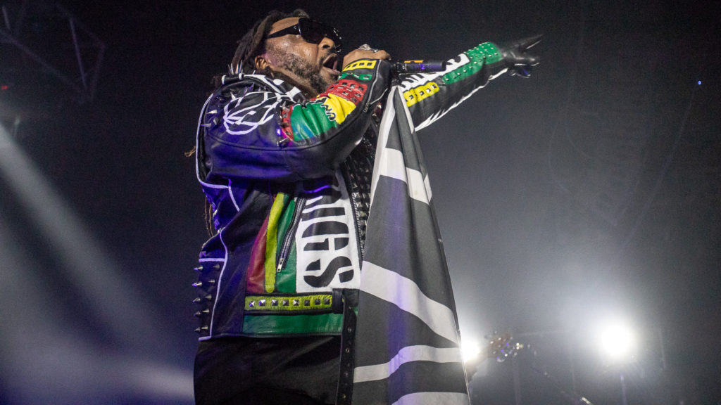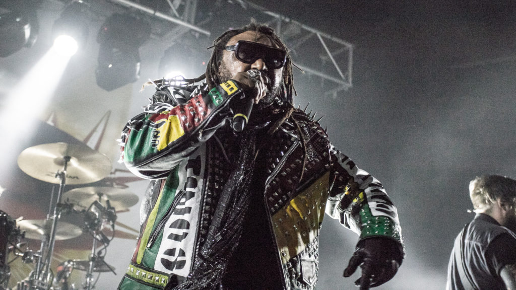 As usual, Skindred have two intro songs (all of AC/DC’s Thunderstruck and a snippet of the Imperial March from Star Wars), which seems a tad excessive. But there’s none of the dicking about that occasionally threatened to derail some of their earlier shows as they arrive in a colourful eruption of shades, dreads (Benji) and extravagant facial hair (the other ‘dreds) to fly through a slick, brisk, crowd-pleasing set. Opener Big Tings is one of just four songs aired from the new album of the same title, which is probably wise given that it’s not actually out yet.