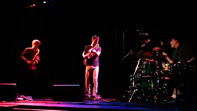 Slamming straight into the poignantly-titled Hippies Need Houses the trio set out their stall: hyper-manic guitar bursts, slam beat drumming, sudden mood swings and moments of melodic beauty. It was a formula that ran through the rest of the set, a fine balance between collective interactions, tight scored passages and free improvisation.