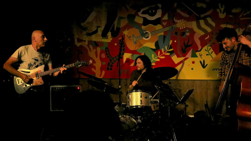 One answer to that, of course, is: Slate Trio, Alex Heane’s double bass being integral to the sound whipped up with Matthew Jones’ drumming and led by the remarkable Neil Smith’s guitar.