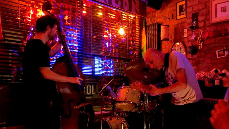 For a while Neil was on his knees pedal-fiddling to create cosmic aftersounds out of which the drums and bass reboiled. It became quite an eruption in that tiny space, yet somehow recombined to a neat, tight climax.