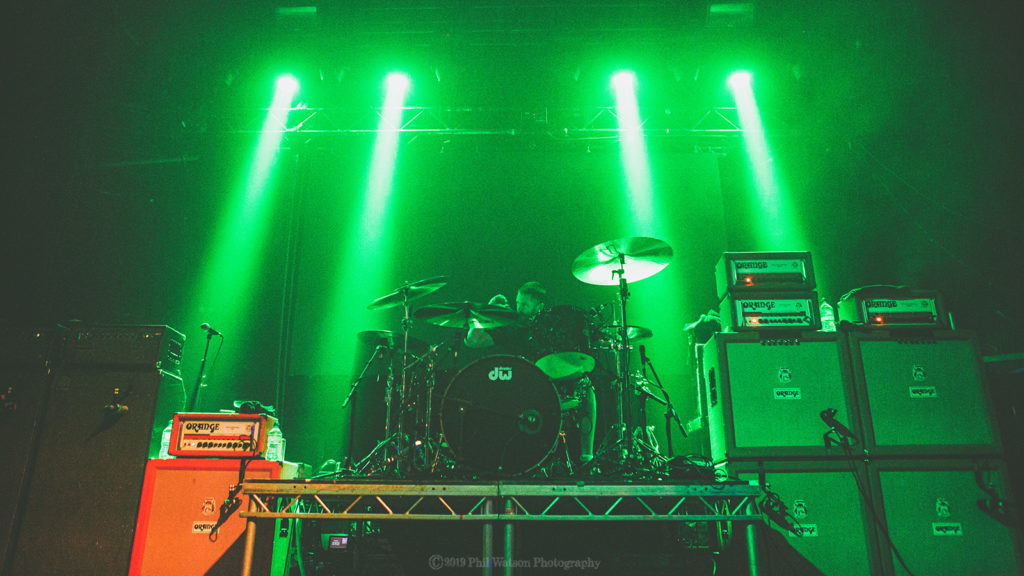 First up are Finns Pharaoh Overlord – an offshoot of prolific cultsters Circle and one of those post-everything experimental acts who chuck a bit of this’n’that into the brew, from stoner rock to Krautrock (former Faust fella Hans Joachim Irmler has bestowed his imprimatur by collaborating). They certainly produce a big noise, which is suitably hypnotic for this medicated audience. But closer inspection reveals that there are just two of ’em. Much of the sound, including some of the growlier vocals, is pre-recorded.
