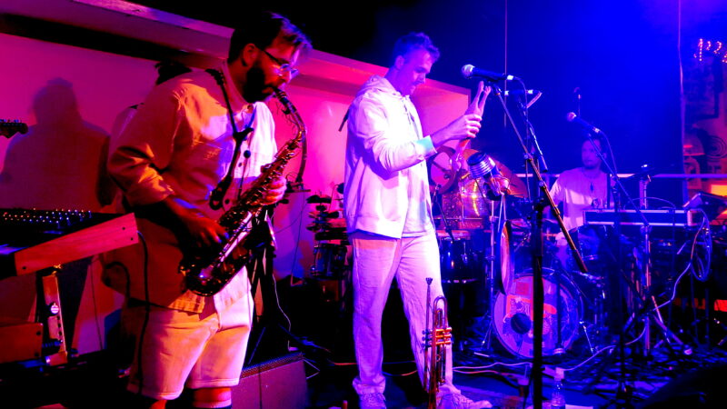 It’s a joke, of course, but as saxophonist Dave Sanders explained, it was also an ironic comment on how things felt during the pandemic and their realisation that “things have to fall apart to be able to get back together afresh”. The resulting album ranges across a wide spectrum of musical ideas and styles but for this gig we got a very healthy dose of the band’s classic sounds – shifting percussion-rich rhythms, tight and smooth brass lines, solid grooving bass and especially uplifting solo breaks from Sanders, trumpeter Alfie Grieve, keyboard player Will Scott-Hartley and Eli Jitsuto on guitar. There was no doubt: the Snazz was definitely back (if it had ever been away …)
