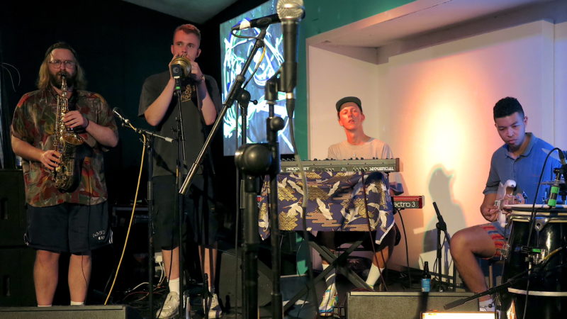 This gig was a showcase for the album, naturally, but also for the band itself as they finally got together with a reasonable sized audience. There were cameo appearances from long term collaborators like vocalist Stanlæy who brought a classic dance music presence to her number, and beat-flavoured rapper Soss who slipped onto the end of Flump, a favourite from their first album, buoyed with smooth horns, Rich Allen’s liquid bass and Hal Sutherland’s cool keyboard sounds.
