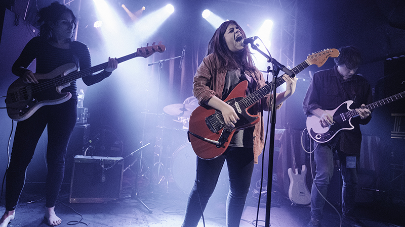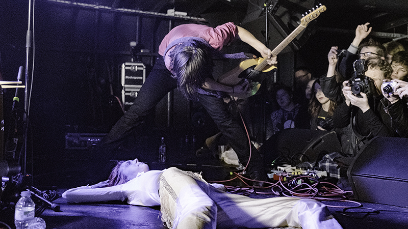 The tunes featured included new, unnamed songs as well as soon come single Be My Friend, arguably one of the strongest numbers of the set and well worth seeking out when released in March. She Goes Her Own Way was memorable too though, initially a sci-fi lullaby for cosmic surfers but then ascending to a furious climax – surf guitars mutating into Godzilla crushing riff machines. The set ended with Pushing Me a tune that delivered a suitably apocalyptic end to the set. Kerry had swapped to guitar leaving Ellie on bass, and she crunched out some massive guitar – the tune climaxing with her using an iPhone as a slide before disdainfully discarding the guitar for some final foot powered feedback.
