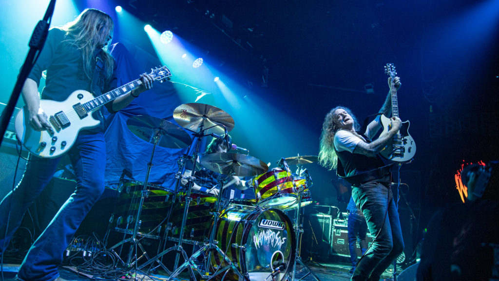 Under a little-known statute, it’s now actually illegal for any major rock band to tour the UK without Wayward Sons in tow. All that slog has paid off in a performance that’s as tight as a shameful Steel Panther sexual analogy, with Sam Wood channelling 1976 Scott Gorham, Phil Martini driving everything along from beneath his Nigel Tufnel/Cozy Powell memorial haircut, Nick Wastell still gurning as though it’s an Olympic sport and Dave Kemp bringing the flat cap back to rock.