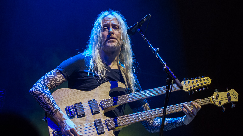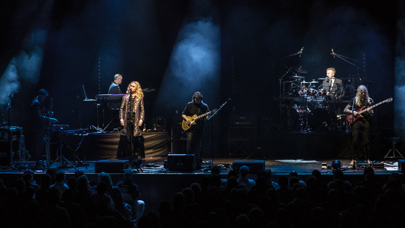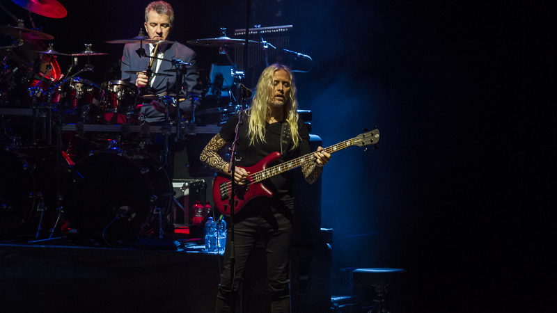 We get three impressive tracks from the album – including El Nino and In the Skeleton Gallery – in the first of two lengthy sets, their Middle Eastern flavours broadening the Hackett musical palette as his guitar weaves around jazzer Rob Townsend’s soprano saxophone. The band remains much the same as the last time he played here, with singing drummer Gary O’Toole and keyboard player/occasional songwriting collaborator Roger King. But regular Steven Wilson sidekick and – lest we ever permit him to forget – former Kajagoogoo popster Nick Beggs takes over from The Flower Kings’ Roine Stolt on a multitude of guitars. That Beggs, like O’Toole, is a strong vocalist proves particularly advantageous, since singing is not Hackett’s strongest suit. Those CSN-style multi-part harmonies come to the fore during a gorgeous rendition of Serpentine Song from 2003’s To Watch the Storms album. As usual, Hackett ends the first set with the magnificently bombastic Shadow of the Hierophant – a Genesis song in all but name – which sees Beggs on the floor pounding bass pedals with his fists.