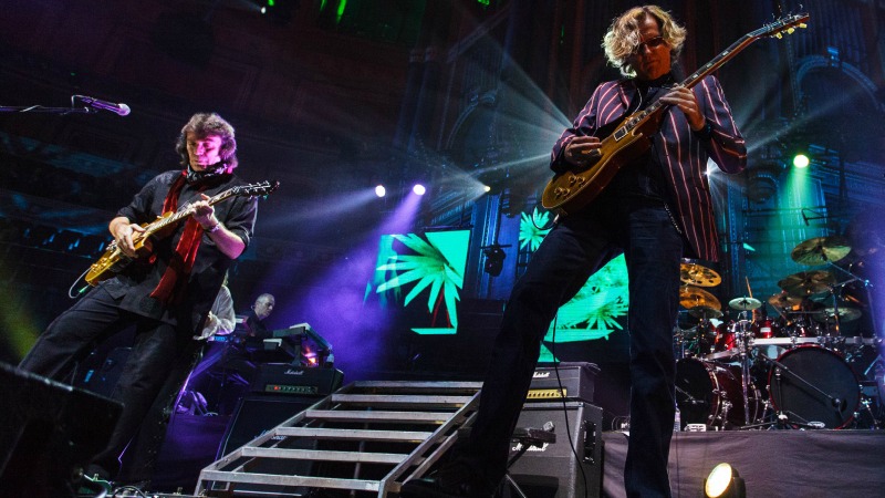 Time for the Genesis set, though casual fans have to be patient. The twist is that Hackett delves more deeply into the catalogue to dust down songs that the band rarely played live back in the day. Drawing chiefly on Foxtrot and Selling England by the Pound, he once again invokes the composer’s right to tinker, which just occasionally results in an excess of alto sax tootling from jazzer Rob Townsend but is mostly hugely effective, especially when he breaks out those soaring twin guitar melodies with the talented Stolt. A rare example of Social Conscience Genesis, albeit in a sci-fi setting, opener Get ‘Em Out by Friday – an attack on corporate greed in the housing market (nothing ever changes) – sees Sylvan and authentic singing drummer Gary O’Toole sharing the vocals that were originally performed by Peter Gabriel alone. Can-Utility and the Coastliners, which Hackett describes as Foxtrot‘s ‘Cinderella song’, gets a rare outing, as does After the Ordeal – his lengthy instrumental from Selling England by the Pound. Beautifully sung by the flamboyant Sylvan, The Cinema Show reminds us how truly adventurous Genesis often were, being a cut’n’shut that shouldn’t work but does so magnificently: a gentle love song that segues into an epic keyboard-driven instrumental in 7/8.