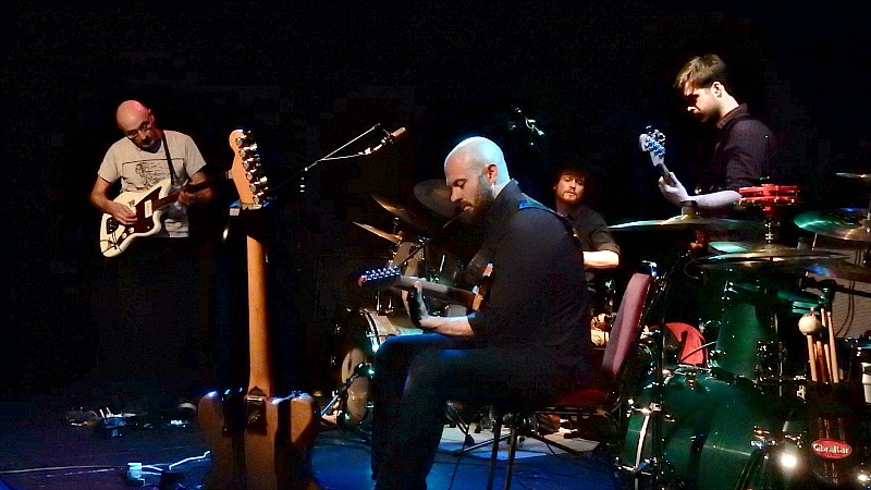If Michelson Morley had brought some rock discipline to an essentially jazz approach, The Brackish were much more tightly tied down. With a dual/duel guitar front-line of seasoned rock players Luke Cawthra and Neil Smith the emphasis was on smartly written music delivered to display the exactness of the writing, albeit with the wig-out option never too far from the surface. The epic Loggins Breakdown was a case in point, opening with Smith’s plinking guitar and Cawthra’s jabbing response before harshly dissonant chords shook the rafters en route to a glowering rumble-riff. That flowered into a raucous cosmic psychedelic conflagration that subsided before a major thrash ending upturned the apple cart again. It was symphonic stuff, referencing The Magic Band, Ummagumma-era Pink Floyd and The Pixies, and the invigorating performance was indicative of how the band’s music has tightened still further since last year’s Liquid of Choice album.