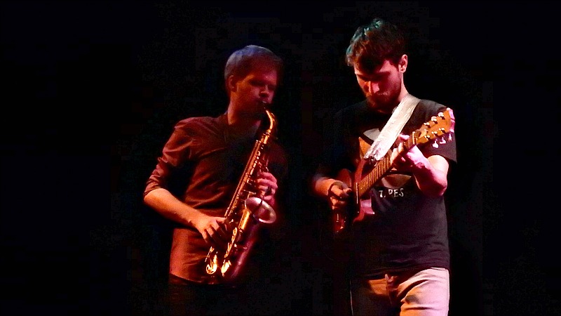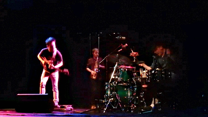 With their impeccable collective jazz pedigree opening trio Michelson Morley wove an electro-acoustic path, Jake McMurchie’s tenor sax emerging from a bank of pedals to rival any guitarist. He spent much of the set crouching over them, harvesting an orchestra of captured and effected samples into a wall of counterpoint on There Are No Different Waves and delivering a funeral pulse for End of Age. Screen-lit drummer Mark Whitlam deployed both electronics and drum kit (and even Tibetan bowls) and duetted cleverly with his own laptop under Riaan Vosloo’s bass solo on Primitive One, the tune fading out through polyrhythmic sax sounds. There was an interesting and creative tension between melody and riff running through, with sudden clean breaks from unmoored ambience into tightly locked slams and back again. It’s effective but there was no denying the pleasure of the Krautrock inspired 4-beat drive through Rice Rage, their final number.