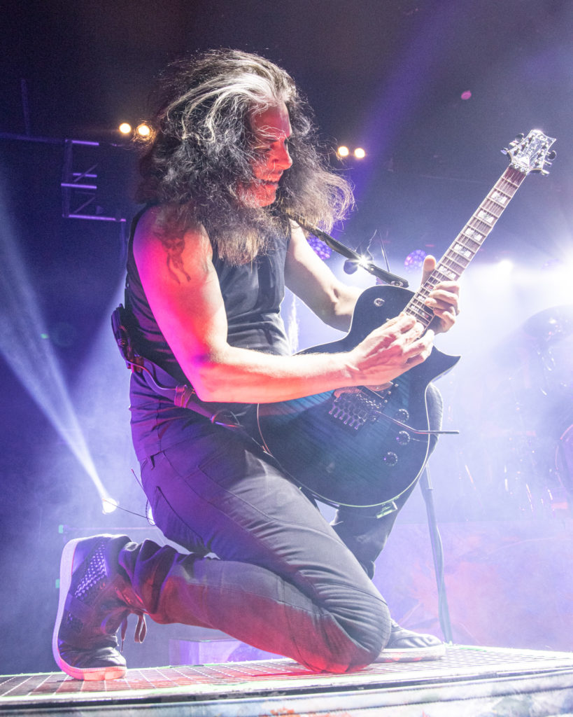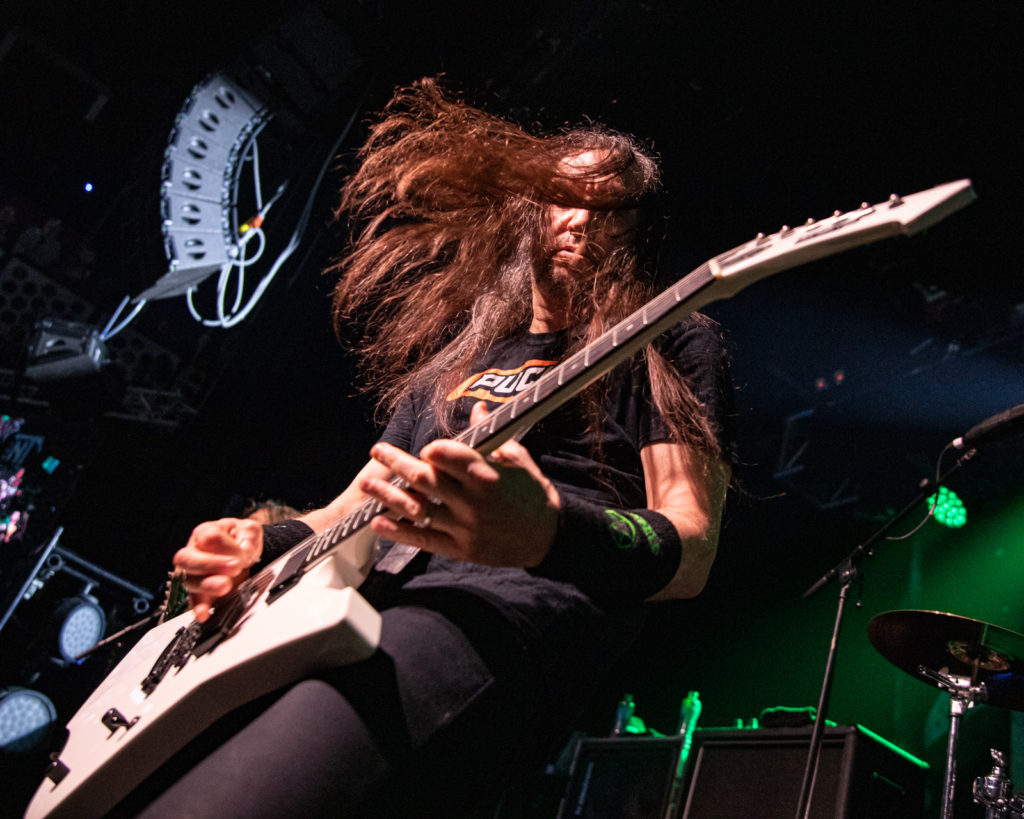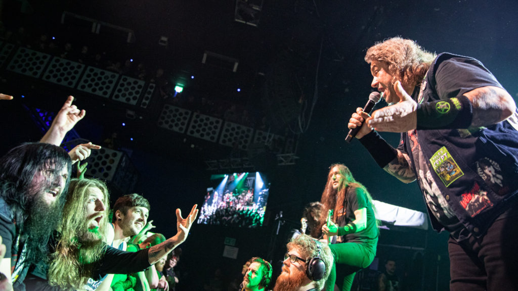 Their second not-so-secret weapon is former Devin Townsend sidekick Gene Hoglan. Not for nothing is this guy referred to by frontman Chuck Billy as “the atomic clock”. A master of precise, challenging and highly technical drumming, he’s one of those rare tub-thumpers that it’s hard to take your eyes off. Having lobbied for the inclusion in the set of Fall of Sipledome, the Thunberg-friendly global warming song from 1999’s The Gathering album, he proceeds to pummel his way through its complex rhythms like an absolute fucking machine. Extraordinary.