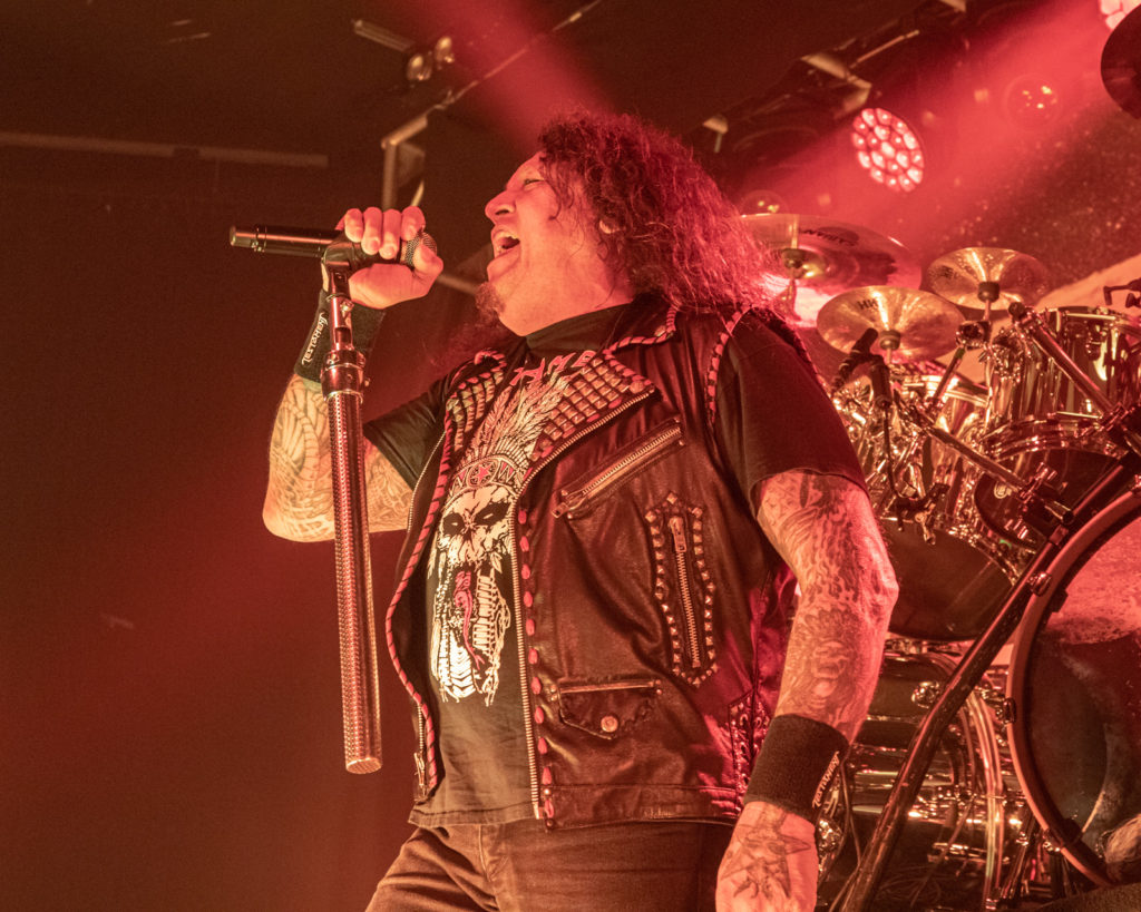“With all the bullshit going on in the world, as least we’re here,” grins Testament’s Chuck Billy.