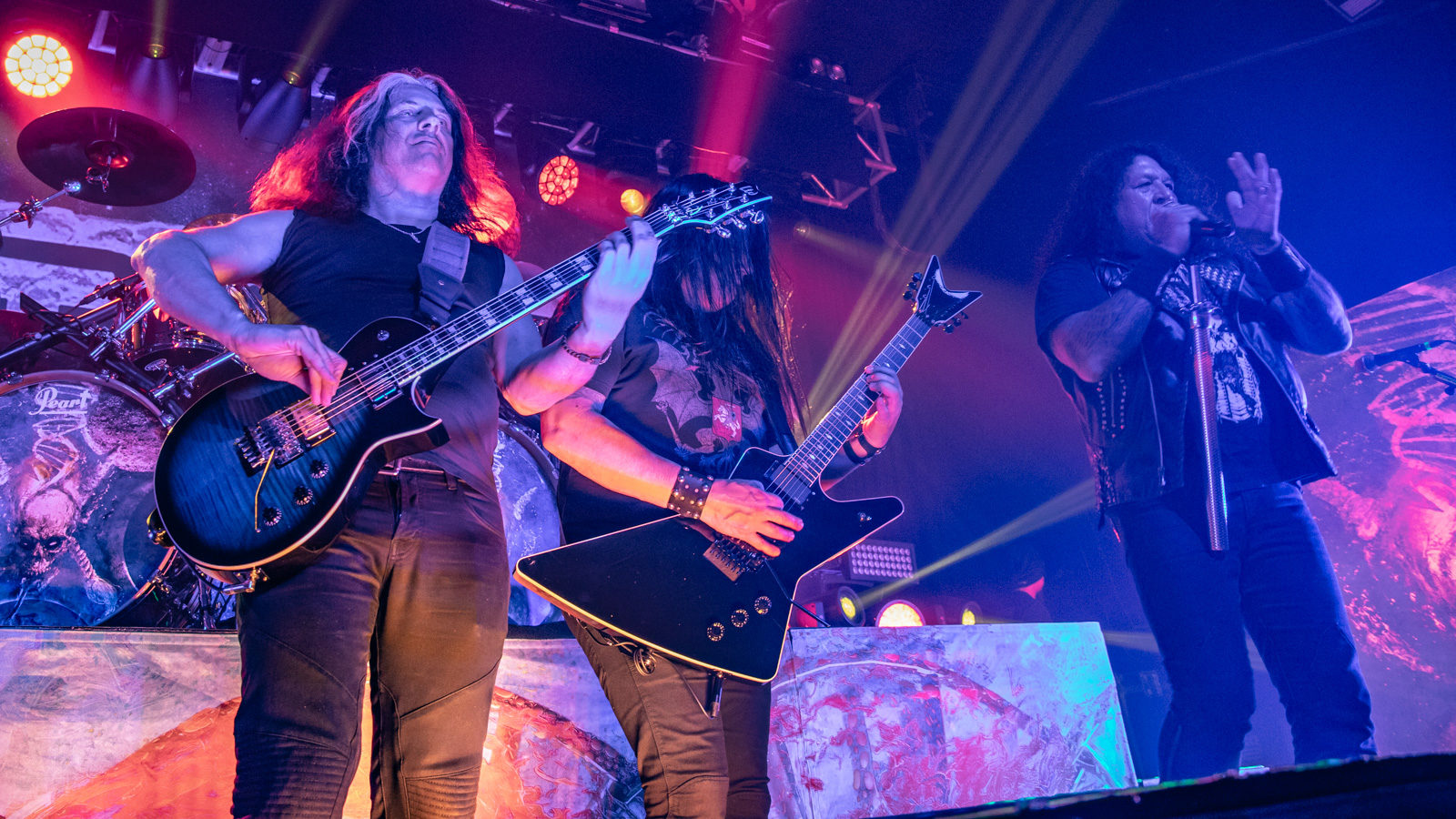 “With all the bullshit going on in the world, as least we’re here,” grins Testament’s Chuck Billy.