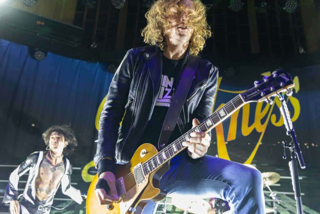 The moment swiftly passes, the confetti canons fire up and it’s not long before Justin’s doing a headstand on the drum riser during Get Your Hands Off My Woman. The sound, which started out a little muddy, is quickly improved too – presumably after some furious sound desk tweaking. Back in the bad old days, sound engineers would regularly curse the former Cole Snorl, whose acoustics were never designed for heavily amplified rock music. But now it seems that some of those vast amounts of our money that were spunked on the project have been lavished on rectifying the situation in the brand spanking new Beacon. “Interesting venue, isn’t it?” quips Justin. “Three levels of enthusiasm!”