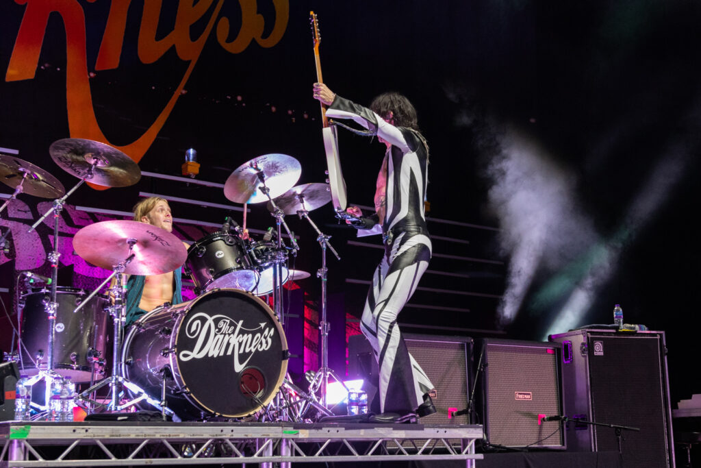 Interestingly, they’re not afraid to get all Led Zep on our asses, playing the opening verse of Immigrant Song (which really cries out to be performed back-to-back with their own Barbarian) and concluding the final encore with the riff from Heartbreaker. Justin teases a ghastly synthwave version of I Believe in a Thing Called Love before the band play it properly, bringing even those seated comfortably on the tiers to their feet.