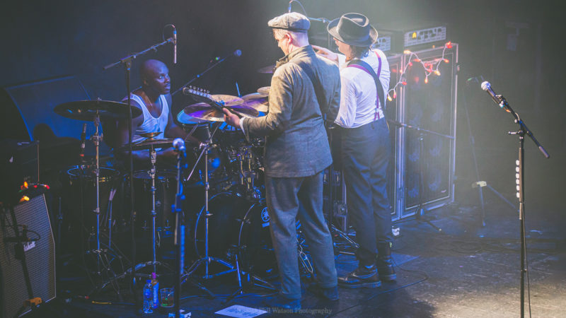 Walking out to ‘The White Cliffs Of Dover’ by Vera Lynn, Pete, Carl, John and Gary all strutted on stage. Pete and Carl were dressed impeccably, crips shirts, suspenders, blazers and flat caps. Gary opted for a practical tanktop whilst he thrashed his drum kit furiously. Opener ‘Horrorshow’ instantly got mosh pits forming, their overall sound was exactly how I remembered, that recognisable janky guitar sound with an intense rhythm section.