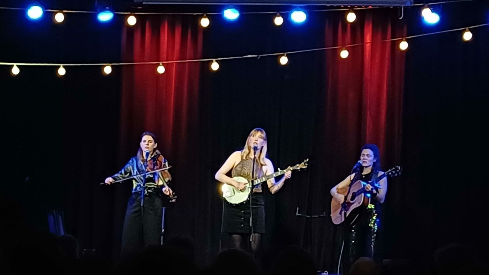 The Magpies play folk music that drags in influences from all over the place. Bella Gaffney’s banjo and Holly Brandon’s fiddle points you to the Appalachians, to a bluegrass-y stomp while Ellie Gowers is as pure and English as they come.
