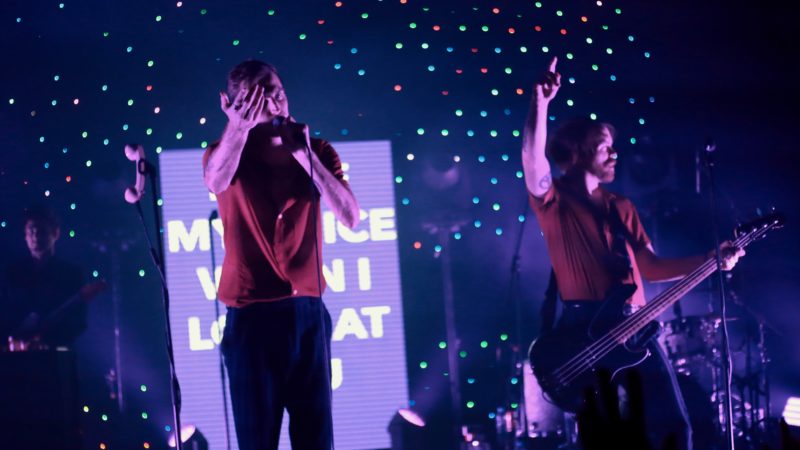 ‘Am I Pretty’ gets everyone down on their haunches before erupting to their feet for a joyous final chorus, ‘Fucked Up Kids’ allows guitarists Kennedy Brock and Jared Monaco to trade solos over one of the heavier tunes on display. All the while a fantastic lighting show and inventive video footage elevate the performance to a level that puts plenty of arena bands to shame, dramatic pre-recorded spoken word introing many of the new songs.
